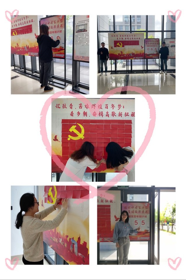 在100天的时间里,学院4个教工党支部和7个学生党支部的百余党员每天接力翻倒计时牌,深情书写对党的祝福,在一笔一画中彰显初心使命,将对党的忠诚与热爱之情融入字里行间,最终由100张祝福卡片汇聚成一面鲜红的党旗,向党的百岁生日献礼。活动中党员们纷纷抒发了自己的初心和祝福,许下不断前行奋进的誓言。
