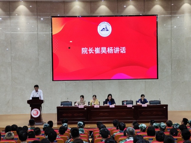 周冬梅对学生管理工作进行了详细介绍,通过“现在你想要什么、现在你能做什么、未来你想成为什么”三个问题引发新生的思考并给出建议,对如何读大学和大学生活常见问题进行了说明和引导,同时也向新生们进行了入学安全教育,提醒新生提高警惕,防范电信诈骗,并要求全体新生及时下载国家反诈中心APP。