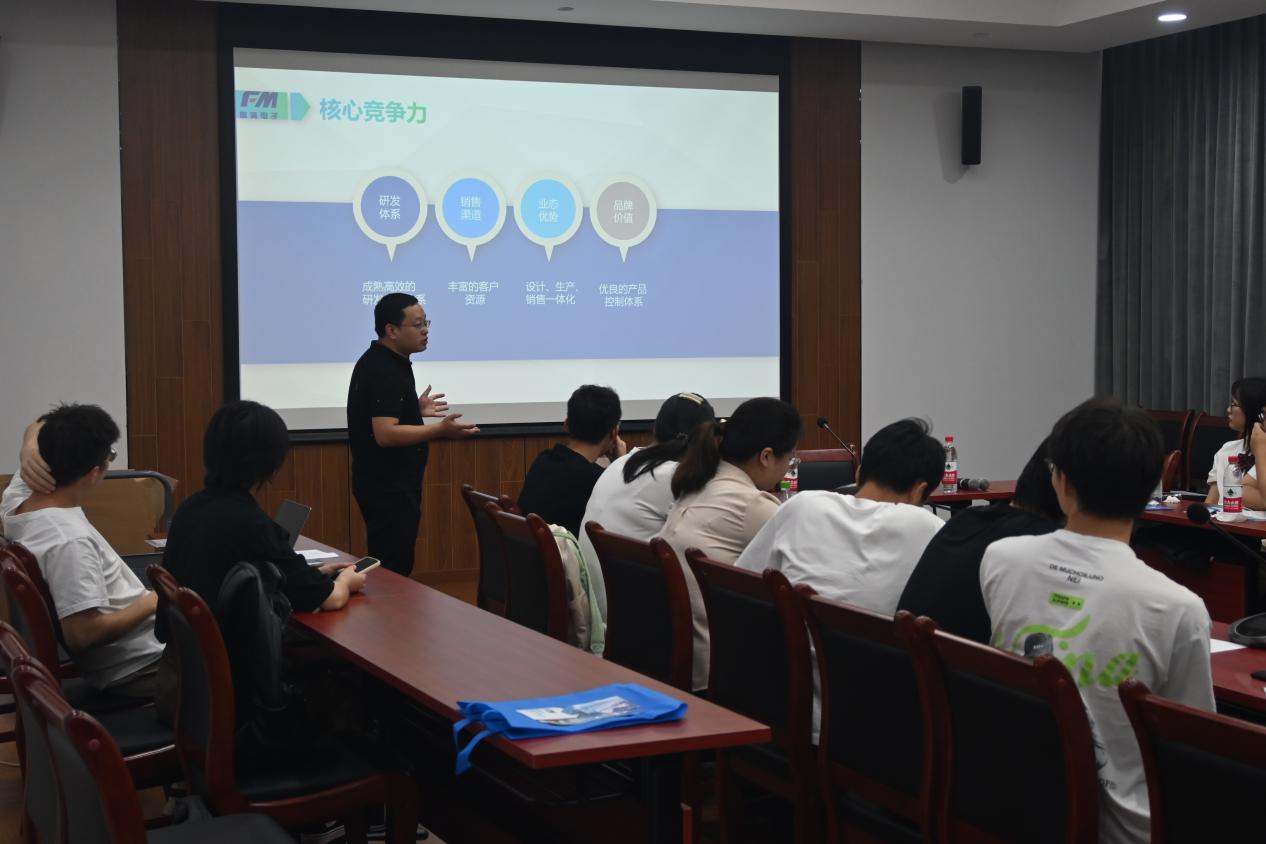 富满微电子集团股份有限公司是一家从事高性能模拟及数模混合集成电路设计研发、封装、测试和销售的国家级高新技术企业及国家规划布局内重点集成电路设计企业,目前拥有电源管理、LED驱动、MOSFET等涉及消费领域IC产品四百余种。马经理对公司做了简要介绍,从芯片行业背景、半导体技术现况等等方面娓娓道来,指明公司前景辽阔,人才需求量大。同时公司也非常重视员工文体和娱乐活动,拥有丰富多彩的内部社团与福利。