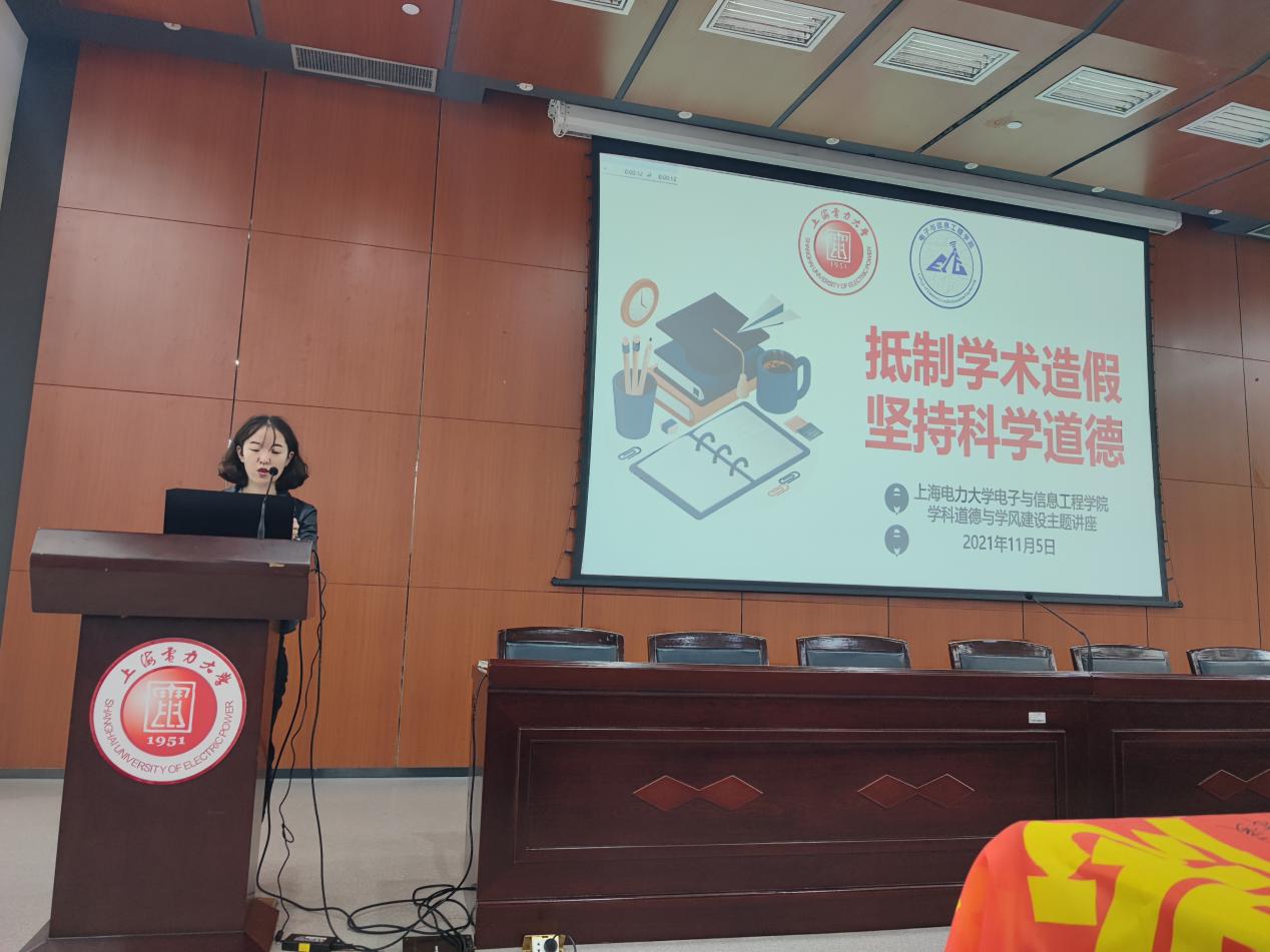 为深入推进研究生学风建设,倡导严谨踏实、坚韧不拔的学风以及追求真理、实事求是、大胆探索、传承创新的科学精神,11月5日电信学院在学术楼103报告厅开展“抵制学术造假,坚持科学道德”主题活动。学院副院长蒋伟、研究生导师曹以龙教授、朱武教授、研究生辅导员高欣月出席活动,全体2021级研究生参加。