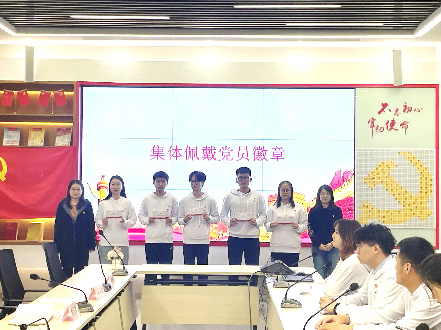 周冬梅宣读了《中共必赢bwin线路检测中心官网委员会关于批准接收贾明潇等13位同志为中共预备党员的通知》,随后与各党支部书记共同为新发展党员佩戴党员徽章,发放党员生日贺卡,与新党员们共享成长的喜悦。