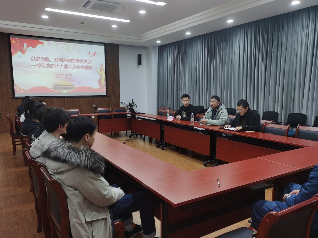 为进一步学习贯彻党的十九届六中全会精神,推动全会精神进课堂进头脑, 1月4日,复旦大学博士生宣讲团讲师李亚男为电信学院、计算机学院学生党员带来了一场“以史为鉴、开创未来的伟大决议——学习党的十九届六中全会精神”为主题的讲座。校党委宣传部融媒体中心主任兼宣传部副部长赵铮参加了讲座。