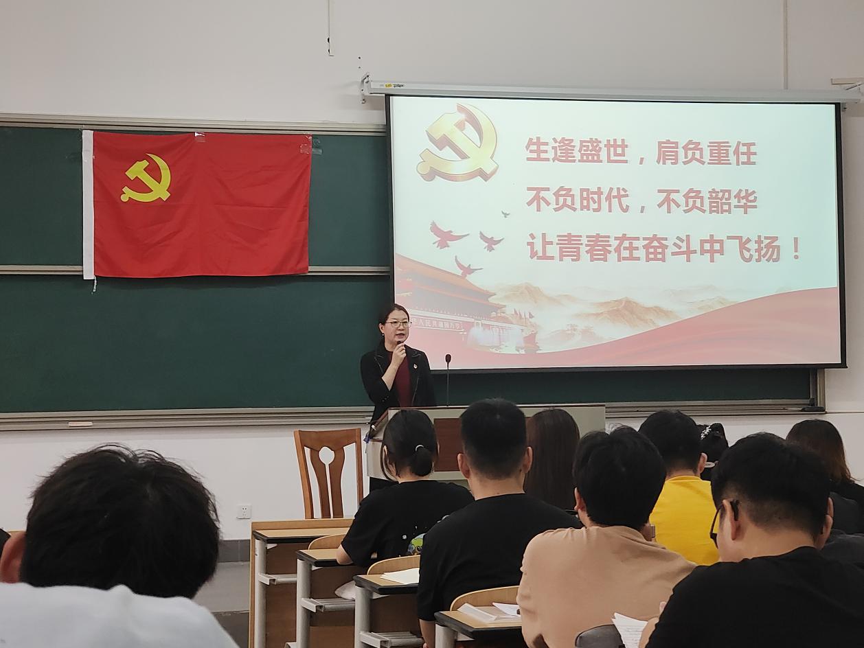 随后,学院党委副书记周冬梅进行开班动员。她先从衣、食、住、行几个方面向大家展示在中国共产党的领导下,我国改革开放以来,尤其是近些年国家发展的变化。随后,周冬梅老师强调要端正入党动机,从增强“四个意识”、坚定“四个自信”,做到“两个维护”入手,明确自身信仰。强调青春由磨砺而出彩,人生因奋斗而升华。在座的同学们既生逢其时,又重担在肩。希望大家能够珍惜这难得的机遇,锤炼自己、提高自己、完善自己,为实现“两个一百年”奋斗目标、实现中华民族伟大复兴的中国梦而努力奋斗!