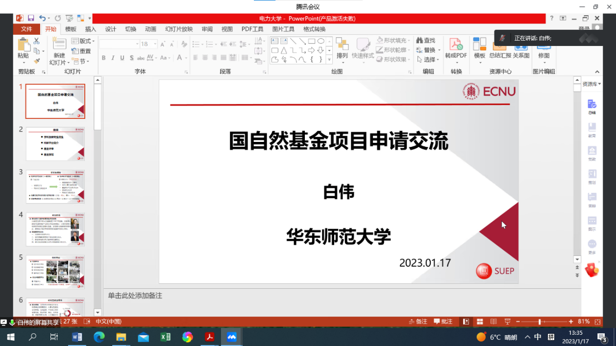 2023年1月17日下午13:30,必赢bwin官网主办的“2023年国家自然科学基金申报系列活动”第6期成功举办。本次活动邀请了华东师范大学物理与电子科学学院白伟副研究员作国家自然科学基金申报讲座。讲座由副院长蒋伟主持,学院30余名教师参加了会议。