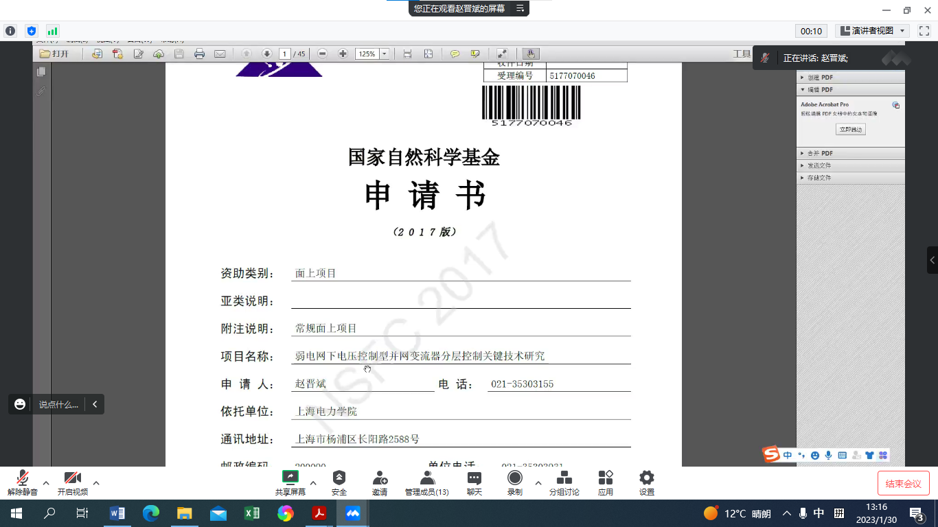 2023年1月30日下午13:00,必赢bwin官网主办的“2023年国家自然科学基金申报系列活动”第7期成功举办。本次活动邀请了我校电气工程学院的赵晋斌教授作国家自然科学基金申报讲座。讲座由崔昊杨院长主持,学院10余名教师参加了会议。