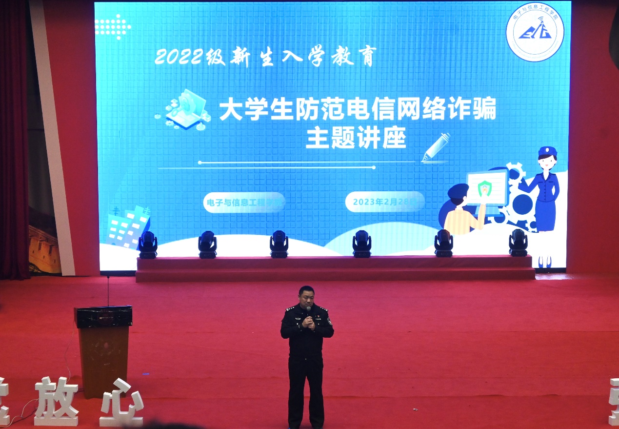 为进一步增强互联网时代学生的安全防范意识和防范能力,减少电信网络诈骗案件的发生,保护好人身安全和财产安全。2月28日下午,电信学院在大学生活动中心演艺厅开展了“大学生防范电信网络诈骗”主题讲座暨“学生反诈安全专员”授予仪式,校保卫处处长金炜,临港高校派出所副所长张华、警官朱红,电信学院2022级辅导员李天成、刘甘雨出席,电信学院2022级全体本研学生共计430余人参加活动。活动由刘甘雨主持。