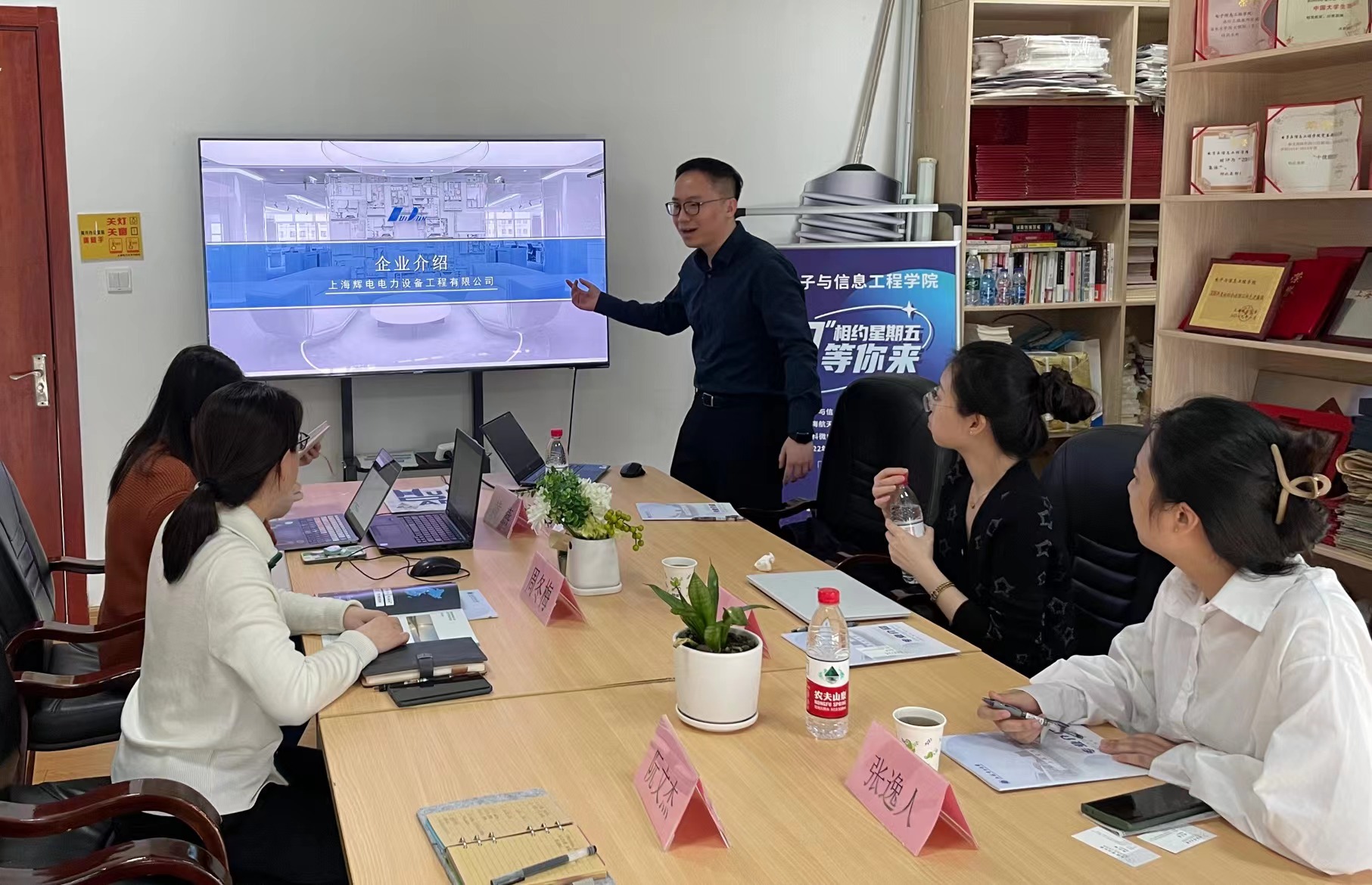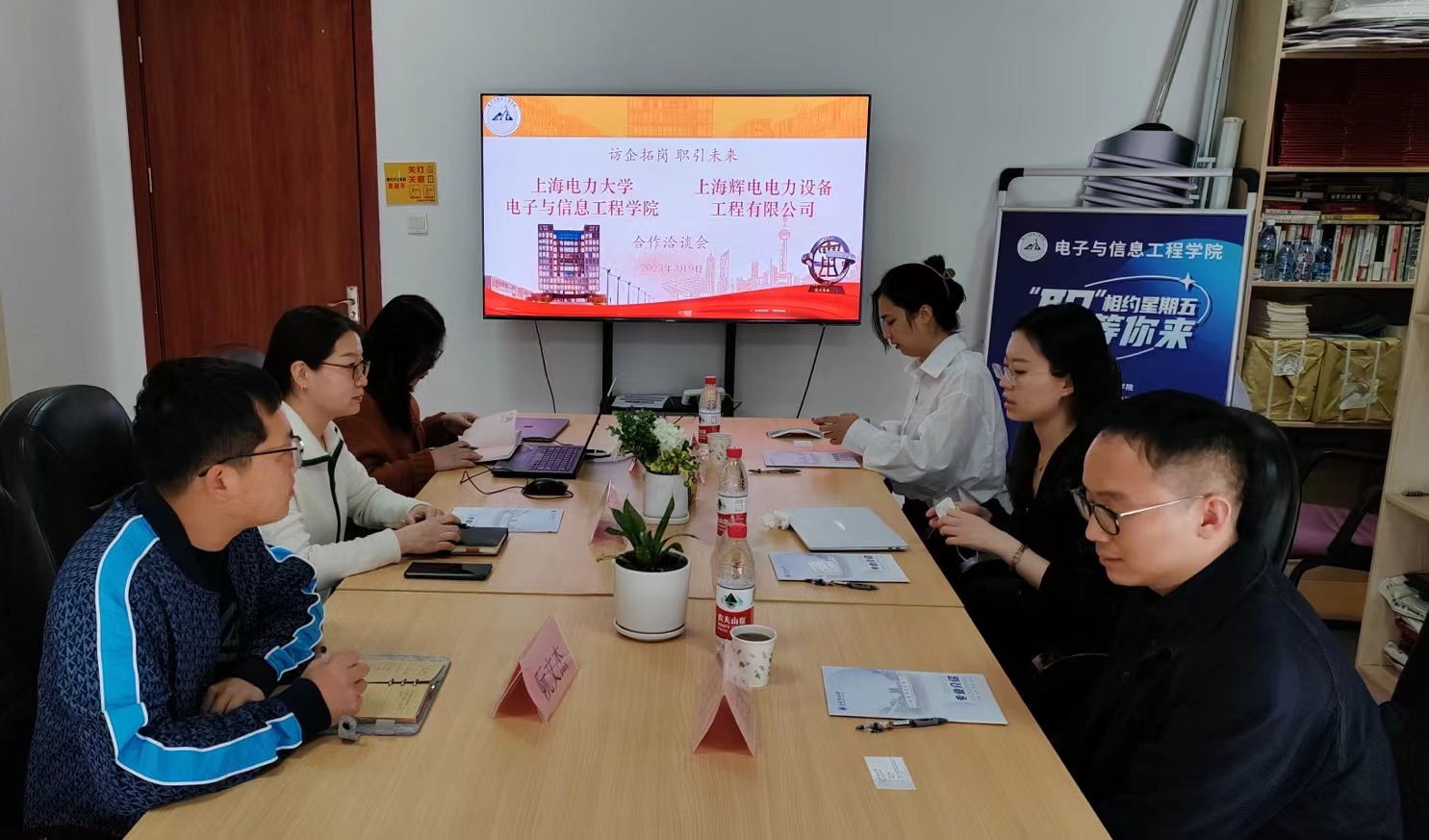 为进一步搭建校企合作平台,吸引更多优质企业来我校选聘人才,3月9日,上海辉电电力设备工程有限公司应邀到校与必赢bwin线路检测中心官网就校企合作进行沟通洽谈。上海辉电电力设备工程有限公司副总经理孙眉、人事主管崔恒静、人事专员张逸人,电信学院党委副书记周冬梅、学院就业专项负责人黄燕、毕业班辅导员阮文杰出席会议。