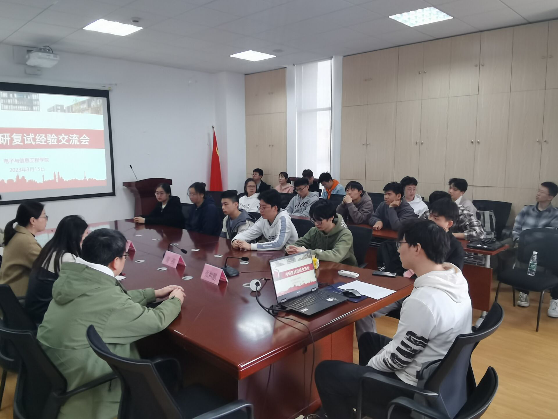 为做好2023届毕业生考研复试、调剂服务工作,提高复试成功率,电信学院于3月15日以线上线下相结合的形式开展了考研复试经验交流会。会议邀请到来自电子科技大学、上海大学、上海理工大学以及我校的7位优秀校友分享复试经验,学院党委副书记周冬梅、光电信息科学与工程专业教师薛亮、就业专项负责人黄燕以及2023届考研学生参加此次活动。