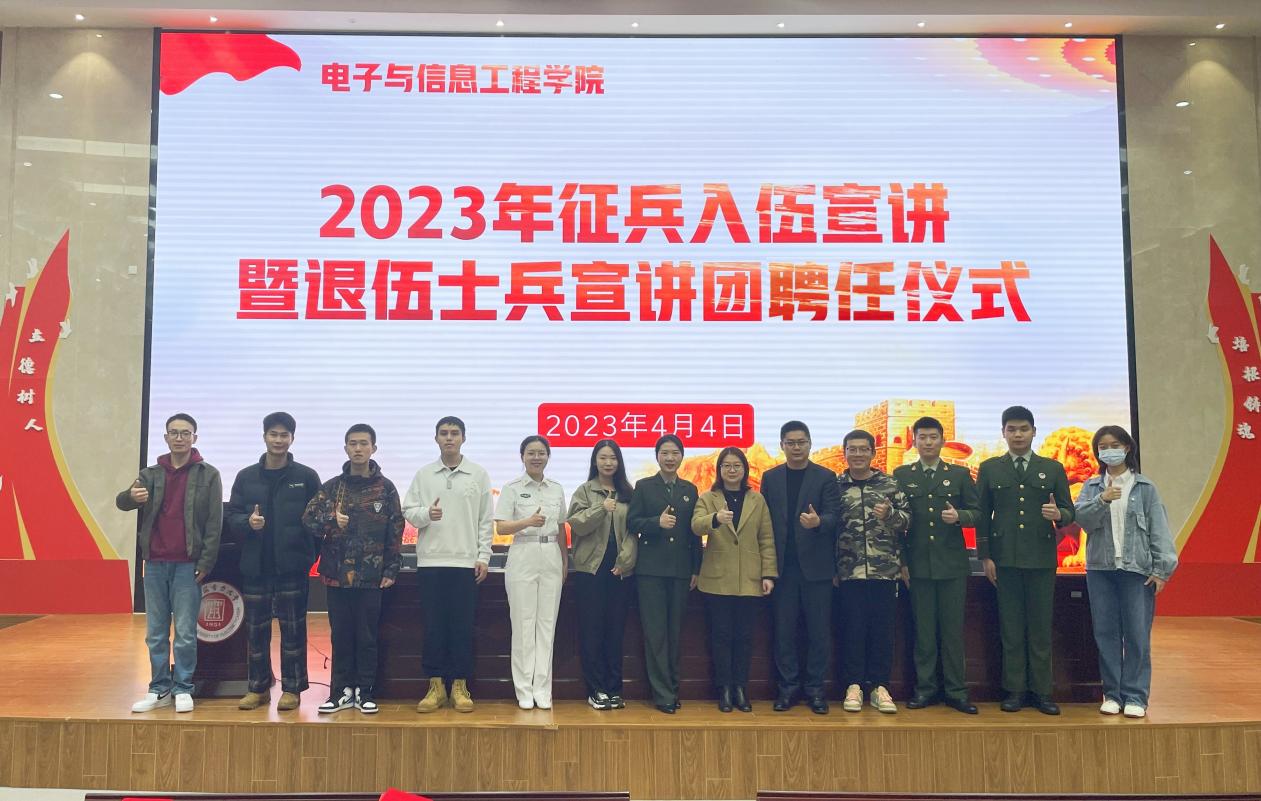 为落实2023年征兵工作的决策部署,帮助学生全面了解应征入伍政策,鼓励和引导学生响应国家号召投身军营报效祖国,4月4日,必赢bwin线路检测中心官网在学术楼117报告厅举办2023年征兵入伍宣讲会暨“退伍士兵宣讲团”聘任仪式。会议邀请武装部征兵工作负责人薛正豪,能源与机械工程学院辅导员、征兵工作负责人仝晶晶出席,必赢bwin线路检测中心官网党委副书记周冬梅、学院征兵工作负责人阮文杰,相关辅导员和百余名学生参加。