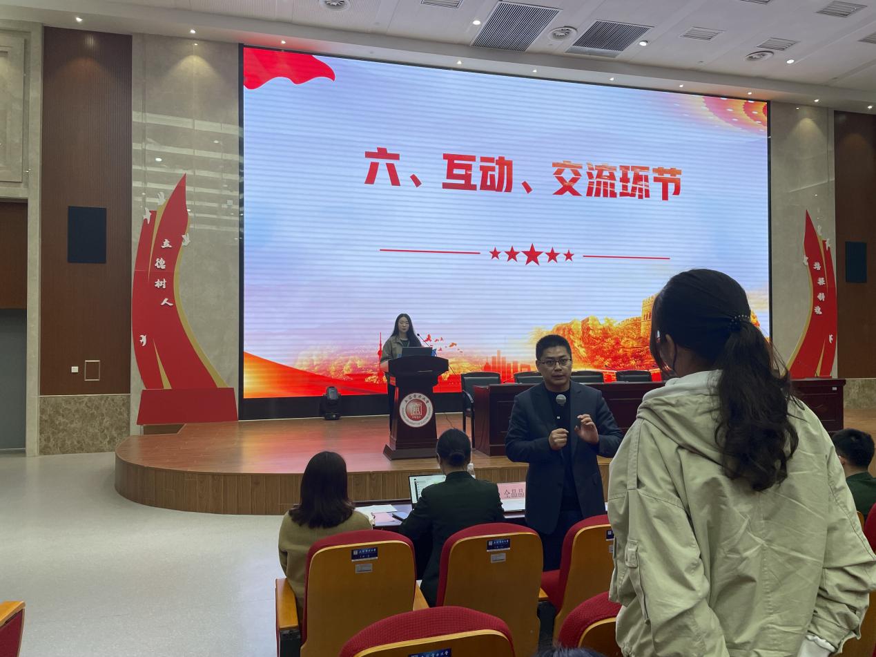 与会师生共同观看了征兵公益宣传片,薛正豪、仝晶晶和退伍士兵宣讲团与在场同学进行了互动交流,解答了同学们的问题。