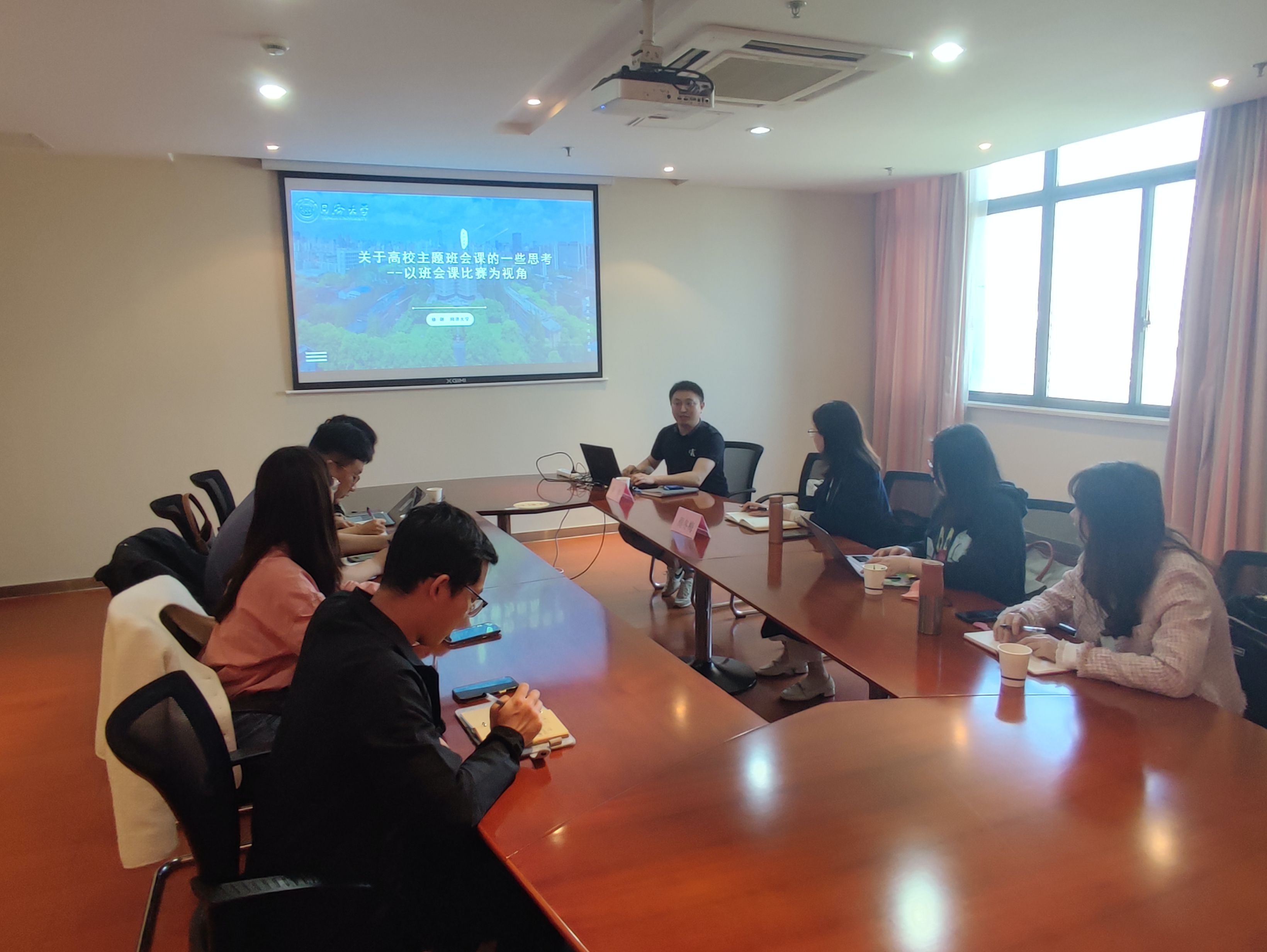 与会教师纷纷表示受益良多,将在今后工作中吸取借鉴好的经验与做法,善于研究、勤于总结,勇于创新,不断提升主题班会策划、组织与驾驭能力,真正发挥主题班会在思政教育和班级管理中的积极作用,确保取得良好育人效果。分享结束后,学院辅导员与徐剑就网络思想政治教育、如何提升大学生班级自主管理效果、如何有效推进思政教育等问题进行充分研讨。