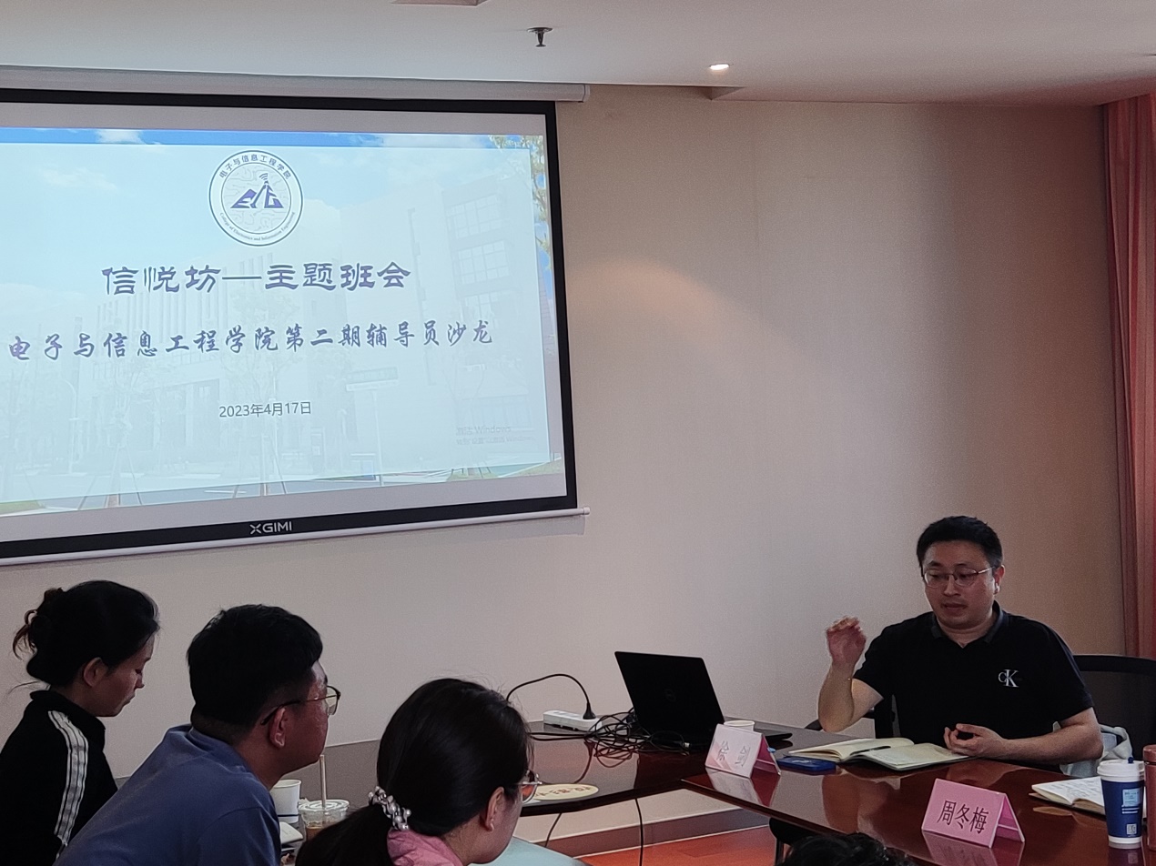 为不断提升思想政治教育工作水平和质量,进一步推动辅导员队伍专业化职业化建设,提升辅导员职业技能及参赛水平,增强立德树人实效,4月17日,必赢bwin线路检测中心官网组织开展“信悦坊-主题班会”第二期辅导员沙龙活动,特邀上海市高校辅导员主题班会课展示活动一等奖获得者、同济大学辅导员徐剑来校做主题分享,电信学院党委副书记周冬梅及全体辅导员参加。