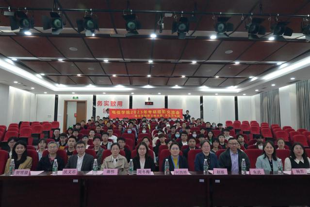 为扎实推进学习贯彻习近平新时代中国特色社会主义思想主题教育走深走实,提高新时代高校人才培养质量,落实高质量就业目标,近日,电信学院在学术楼103报告厅举办2023年考研经验交流会。学院党委书记何西培、党委副书记周冬梅、副院长赵琰、各教工党支部教师代表和来自学生党支部的6位“准”研究生参加了此次活动。同时,本次活动吸引了全院各年级百余名学生来到现场聆听。