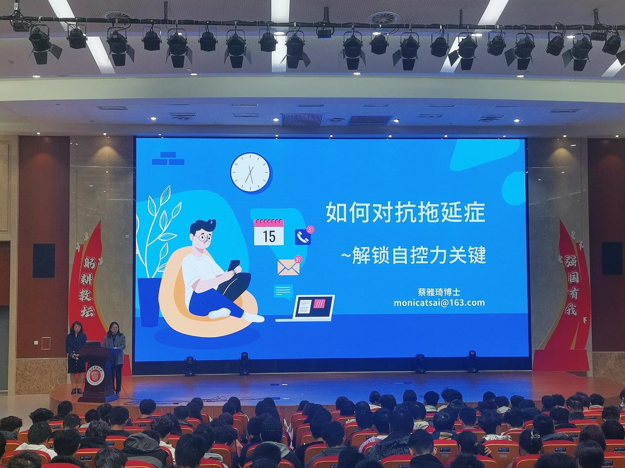以“心”赋能,普及心理健康知识。电信学院以“线上+线下”相结合的形式,开展心理健康知识宣传活动。学院特邀校心理健康教育中心蔡雅琦博士为2023级新生开展心理健康第一课,围绕如何对抗拖延症,作题为“解锁自控力密码”心理健康教育专题讲座,蔡老师以生动的语言和丰富的案例,引导新生们正确认识大学生活中的心理变化,帮助学生扣好大学的第一粒扣子。学院安心委员联合会依托学院微信公众平台,制作以“心逐梦想,健康同行”为主题的心理健康知识系列推送,引导学生正确认识自我,了解在面临压力和困难时的自我调适办法,鼓励学生以积极的心态面对生活、关爱自我、追逐梦想。