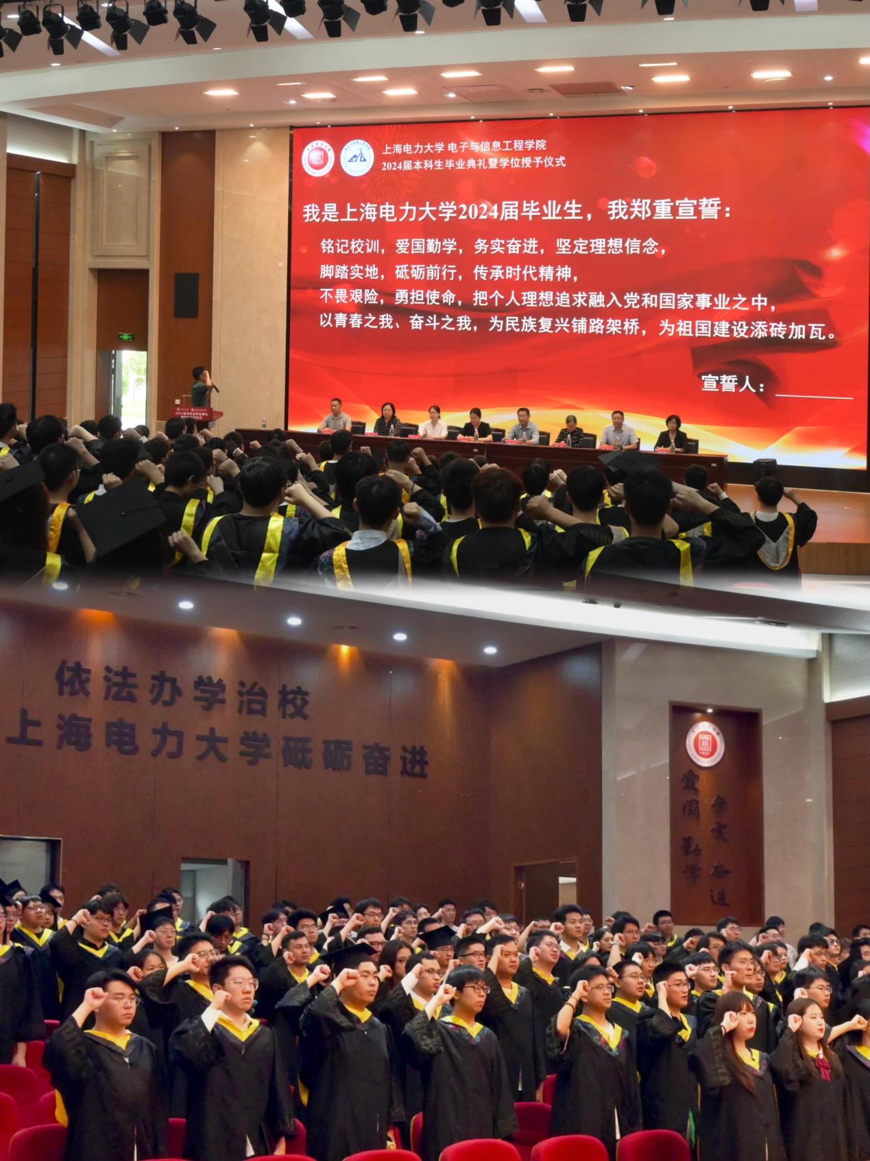 毕业生代表张鑫豪带领全体毕业生共同宣誓,郑重承诺将铭记师长教诲,弘扬上电精神,为祖国的繁荣富强贡献力量。