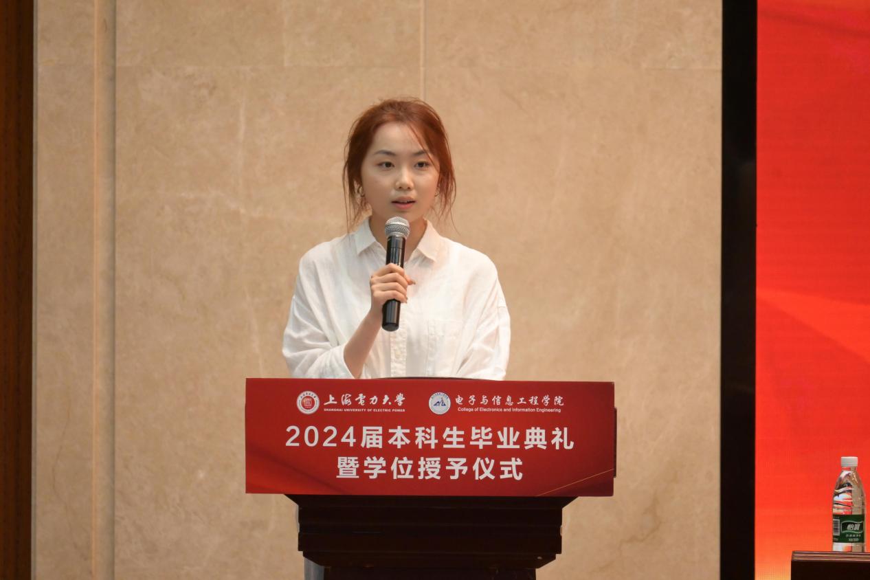 毕业生代表黄馨瑶回顾了自己在大学的点点滴滴,表达了对母校、老师、同学们的感激之情和对未来的憧憬。她表示,将牢记“爱国、勤学、务实、奋进”的校训和“立德、求知、创新、求是”的院训,继续认真钻研、脚踏实地,带着母校的期望、老师们的教海、朋友们的鼓励,砥砺前行,努力做怀揣梦想脚踏实地的人、拥有智慧富有激情的人、德才兼备敢挑重任的人。