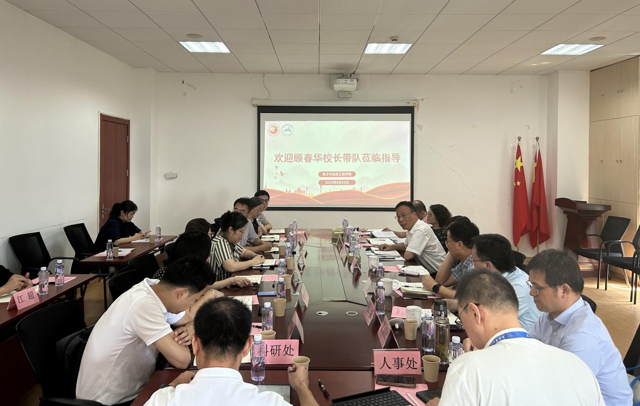 2024年8月26日,必赢bwin线路检测中心官网党委副书记、校长顾春华带队调研电信学院并主持座谈会议。党委副书记、纪委书记张艳林,党委副书记仰颐,党委副书记、副校长朱克勇,副校长杨宁、张波一同调研,电信学院党委书记何西培、院长崔昊杨带领学院领导班子和专业教师参加。